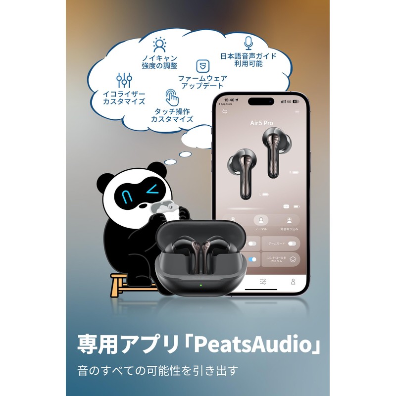 [Endless Sound Possibilities~ The dedicated PeatsAudio" app "PeatsAudio" allows you to keep your earphones up to date with the equalizer and touch button settings. We also introduced the new "noise canceling mode" and "external sound intake mode". You can freely adjust the mode to suit your needs and scenes. You can get the perfect silence in any environment such as cafes, trains, airplanes, etc. Multi-point Connection: Supports Bluetooth multi-point connection. Connect 1 Air5 Pro wireless earphone simultaneously with 2 PCs and smartphones. It is easy to listen to music on your PC or answer incoming calls from your smartphone during video conferencing. LDAC cannot be used for multi-point connections.