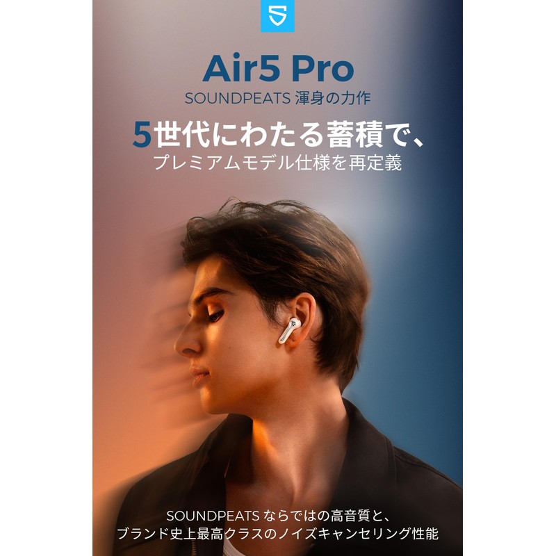 SOUNDPEATS Air5 Pro Wireless Earphones, 55 dB, Noise Canceling, LDAC/aptX, Lossless, High Resolution, Snapdragon Sound Compatible, Bluetooth 5.4, Lossless Sound Quality, Multi-Point/Hybrid