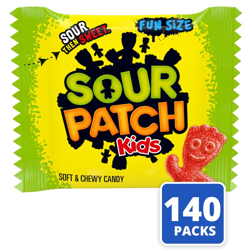 • 140 snack packs of SOUR PATCH KIDS Soft & Chewy Candy