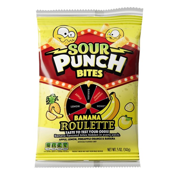 Sour Punch Banana Roulette Chewy Candy, 5 oz Bag