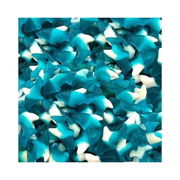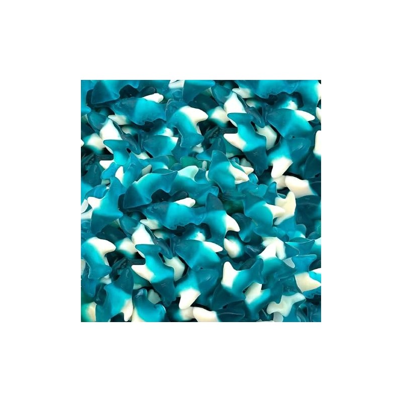 - Delectable Gummy Sharks: Indulge in the irresistible taste of these chewy, fruity gummy sharks in blue and white hues.