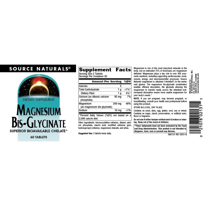 Source Naturals Source Naturals Magnesium Bis-Glycinate, Superior Bioavailable Chelate* - 60 Tablets