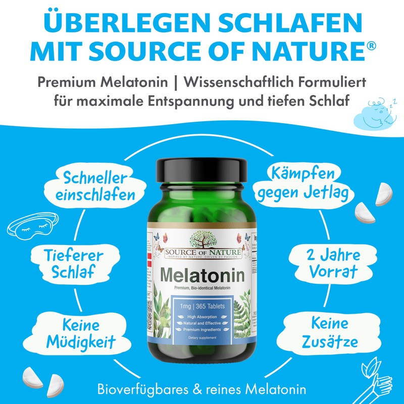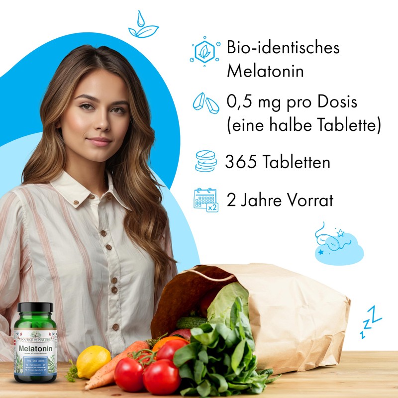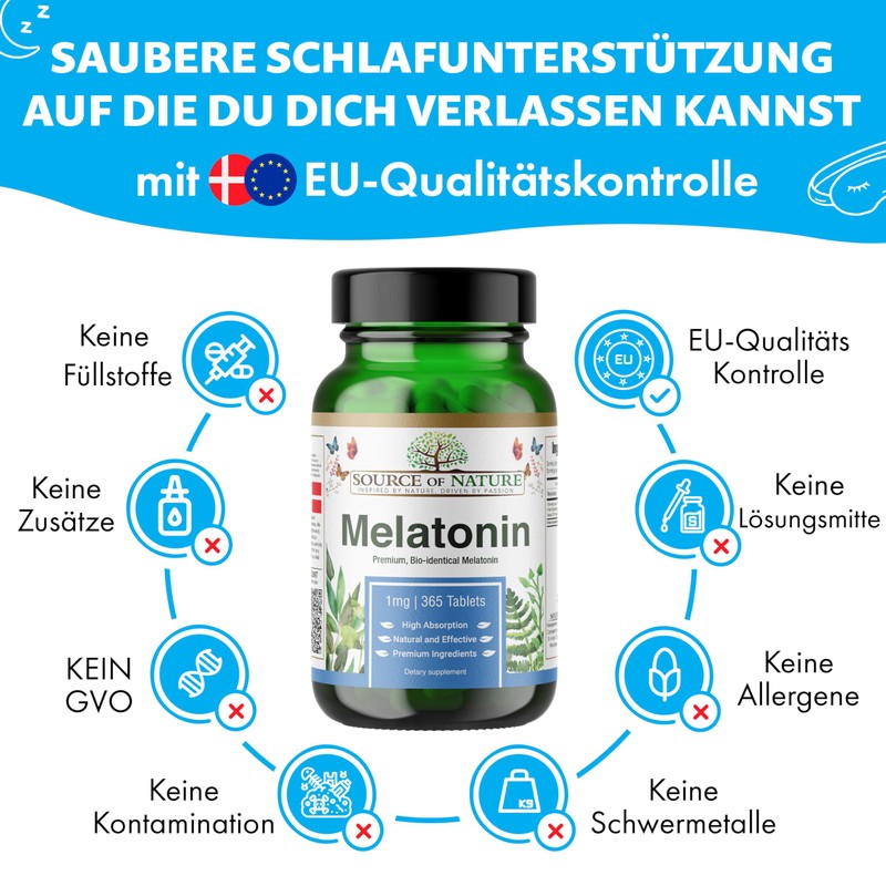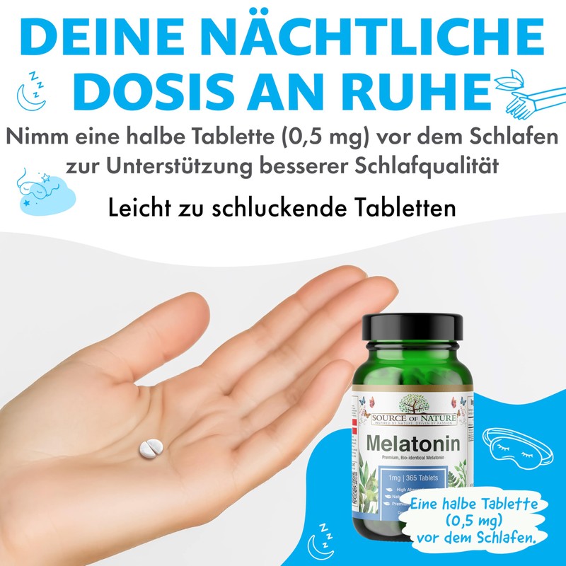Source of Nature® | 365 Premium Melatonin Tablets | 2-Year Supply | 0.5 mg per Dose (½ Tablet) | High Dose | No Unwanted Additives | Made in Denmark | Independently Tested