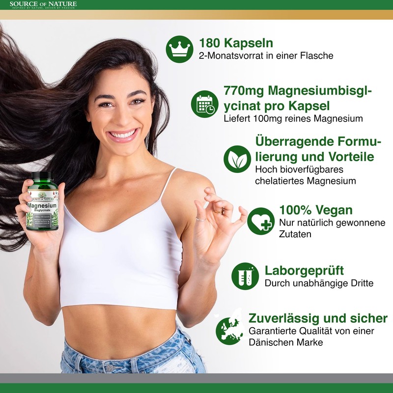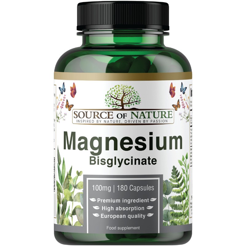 Source of Nature® Magnesium Bisglycinate 770 mg 180 Capsules 2 Month Supply 100 mg Elemental High Quality High Bioavailability Stomach Friendly Laboratory Tested