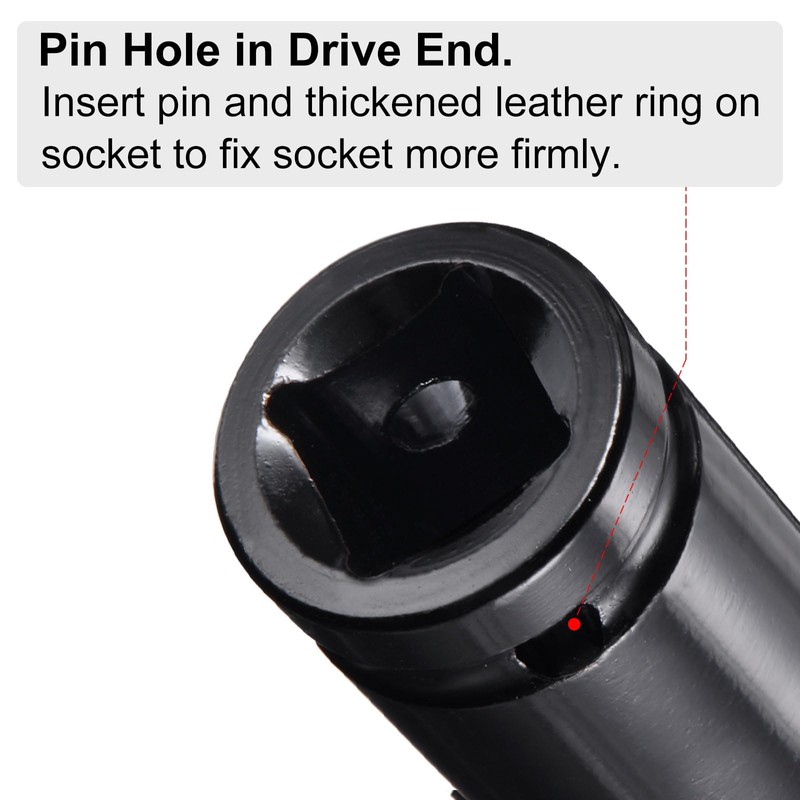 Metric socket has pin holes in the drive end. Insert the pin and the thickened leather ring on the socket to fix the socket more firmly on the wrenches. It won't fall off or stick on fastener heads.