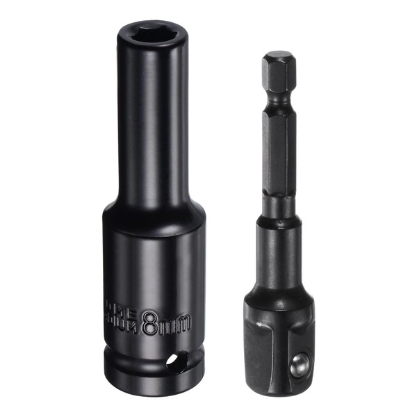 sourcing map 1/2" Drive 8mm 6-Point Deep Sockets 3" Length with 1/2" to 1/4" Hex Shank Adapters Phosphate Coated, CR-V Steel Socket Adapter Accessory Set Kit for Hex Bolts Nuts