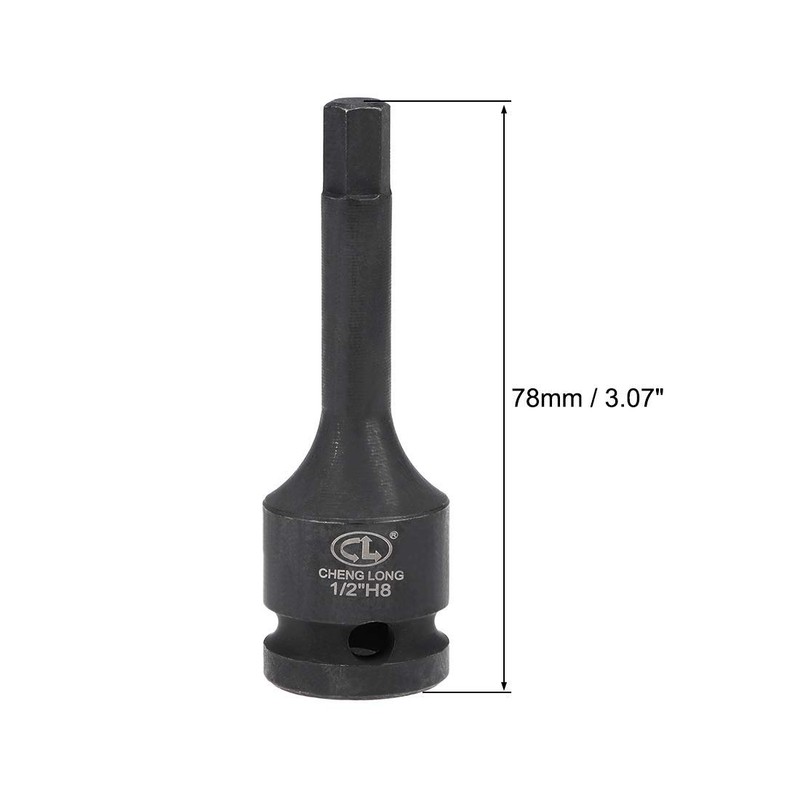 - 【Size】1/2-inch drive socket, H8 (8mm) hex bit, 3.07-inch (78mm) total length.