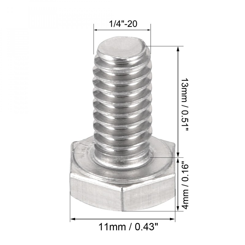 - Product Name: Hex Bolts; Material: 304 Stainless Steel; Color: Silver Tone; Thread Size: 1/4 x 1/2"(D*L); Rod Length: 13mm / 0.51"; Number of Teeth: 20