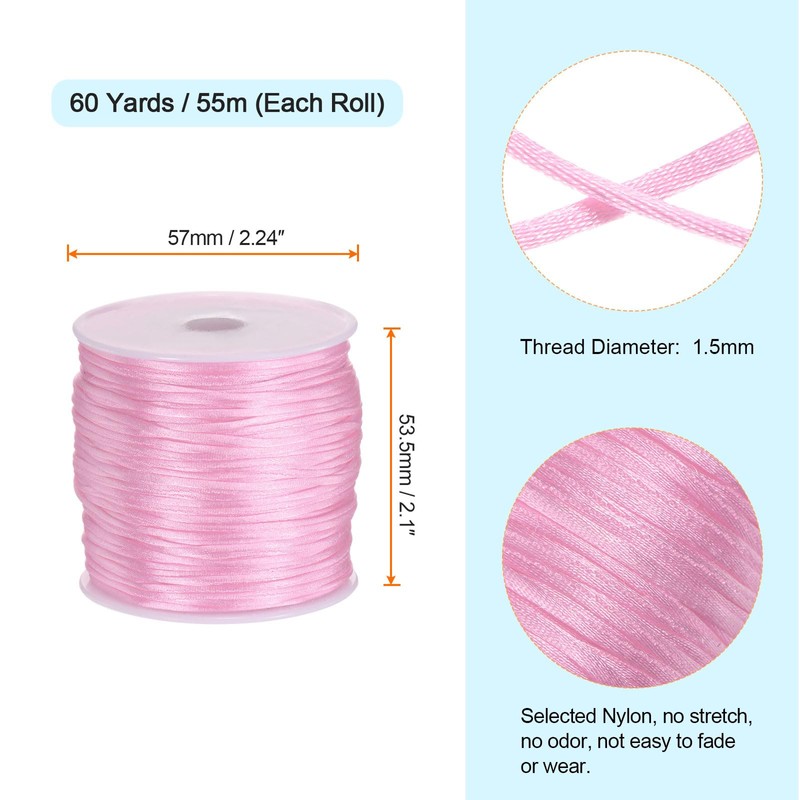 sourcing map 1.5mm Nylon String Cord 60 Yards Nylon Satin String Bracelet String Chinese Knotting Cord Beading Thread for Jewelry Making Braided Necklaces Macrame Trim Craft Pink