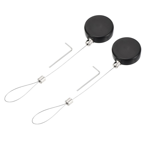 sourcing map 1.8 ft Retractable Cable Lock with Latch Remote Control Security Lock with Adjustable Cord Tether Anti Theft for Laptop, TV, 200g, Black, 2 Pack