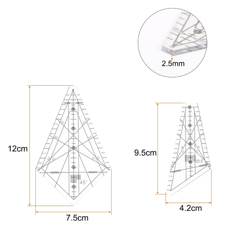- Size - Total Size: 22.5° Template: 9.5cm x 4.2cm, 45° Template: 12cm x 7.5cm; Thickness: 2.5mm.