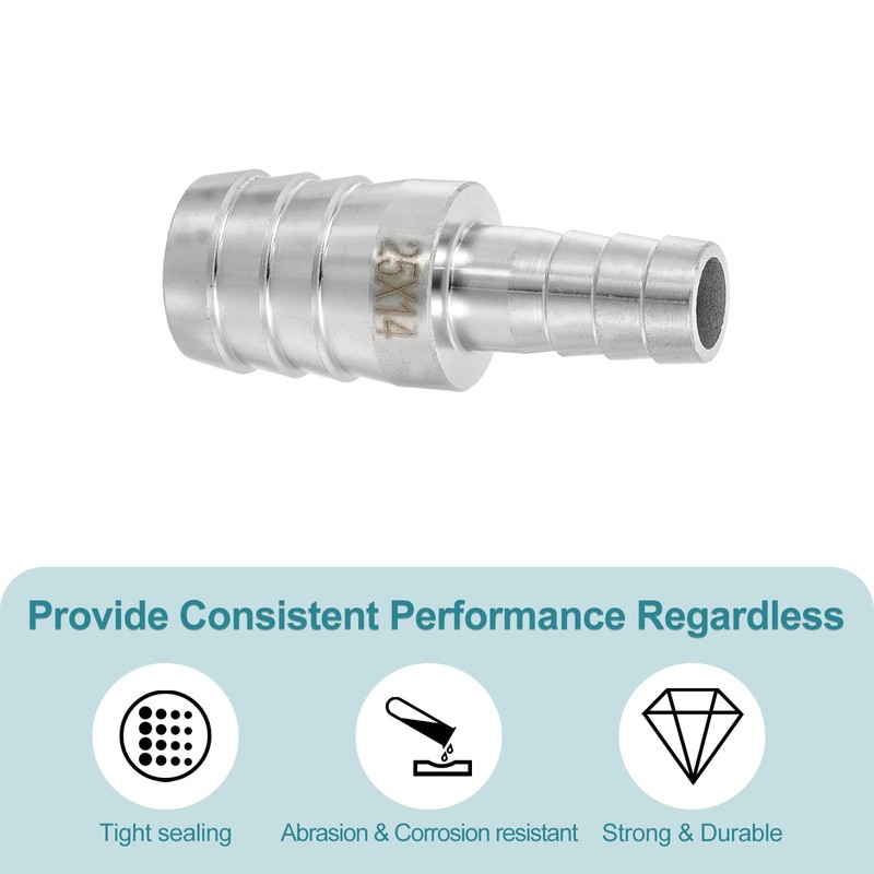 - [DESIGN]: Forged straight-through reducing design with two openings for connecting and branching two pipe ends with different inner diameters. It connects two hoses of the different diameter in a straight line. Please select the hose barb of the corresponding diameter according to the inner diameter of the hose. Suitable for high or low-temperature environments. It can provide consistent performance regardless of weather conditions.