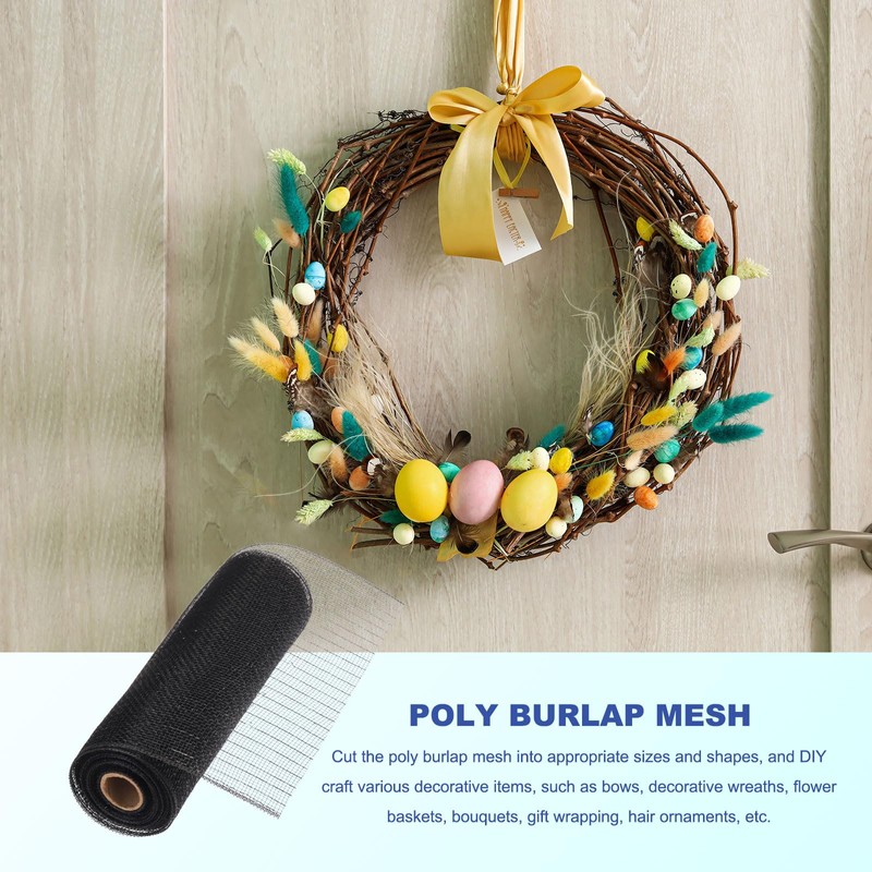 - Poly burlap mesh, decorative material with bright colors, used to decorate wreaths, bouquets, etc. in spring, summer, and fall, adding bright colors and natural texture; Burlap decorative mesh, made of polyester material, which is durable, wear-resistant, not easily damaged, and waterproof. Floral burlap mesh roll can be used outdoors in gardens, lawns, and other areas; Poly burlap decorative mesh can be cut, folded, and packaged for easy use, especially suitable for gift wrapping