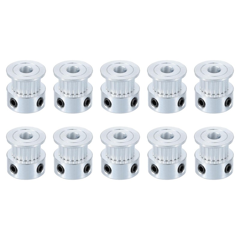 sourcing map 10 Pcs Aluminum 20 Teeth 5mm Bore 6mm Width Timing Belt Pulley Wheel Idler Pulley Synchronous Wheels Gear Part for 3D Printer, Silver