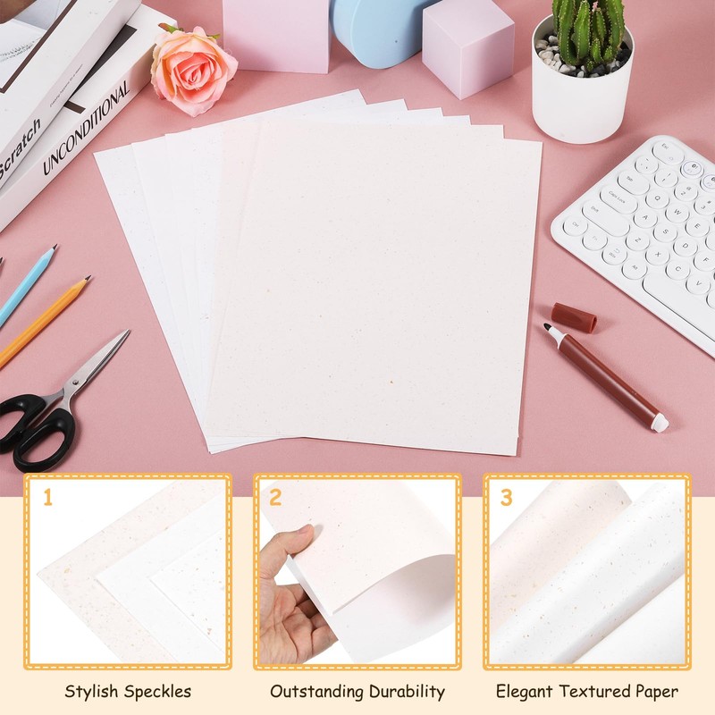 - Outstanding Texture: Crafted from durable, elected cardstock material, these resume paper sheets offer a smooth yet textured finish for writing, printing, and crafting. Elegant Design: The natural speckles detail on the resume paper adds a unique charm, making it perfect for resumes or creative projects that stand out. Versatile Applications: Perfect for invitations, scrapbooking, calligraphy, DIY crafts, or any project that requires a refined and artistic touch.