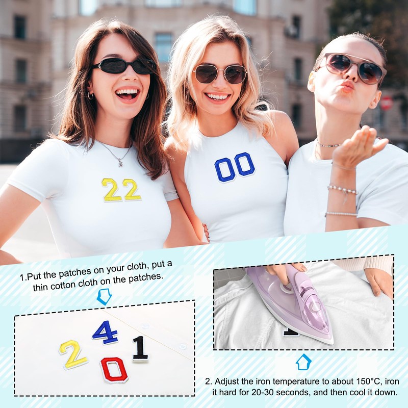 - Steps of installation: 1. Put the number patches on the target position, and is recommended to put a thin white cotton cloth on the cloth sticker. 2. Adjust the iron temperature to about 150°C, iron it hard for 20-30 seconds, and then cool it down. 3. You can also use a needle and thread to sew a few stitches on the edge of the cloth for reinforcement.