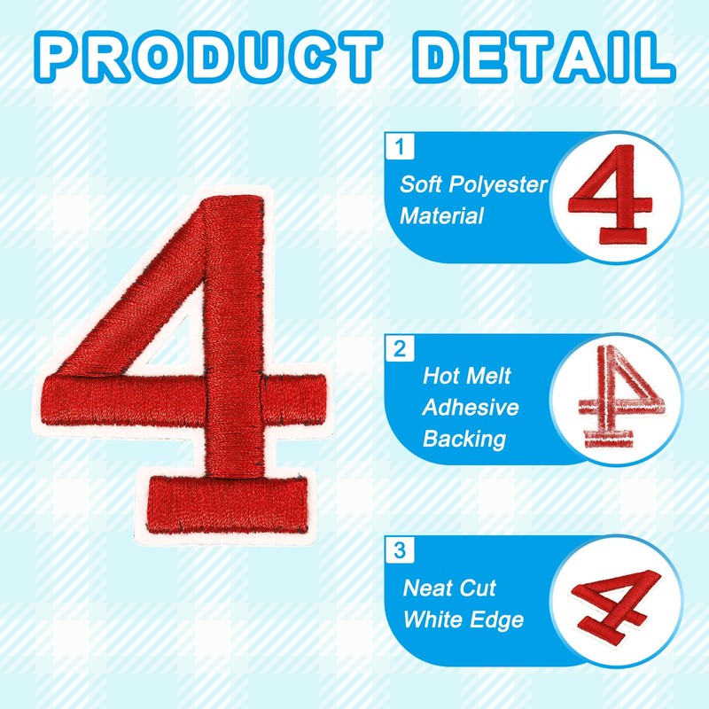 - 1. The iron-on patches are made of good-quality polyester with exquisite craftsmanship and great durability, which are comfortable to touch and washable. The strong adhesive with heat sealant glue on the back is durable and easy to use. 2. Each patch's white edging is neatly cut. Use it on your belongings to make them more delicate and stylish. Various numbers are available for DIY, allowing you to form exclusive styles or logos.