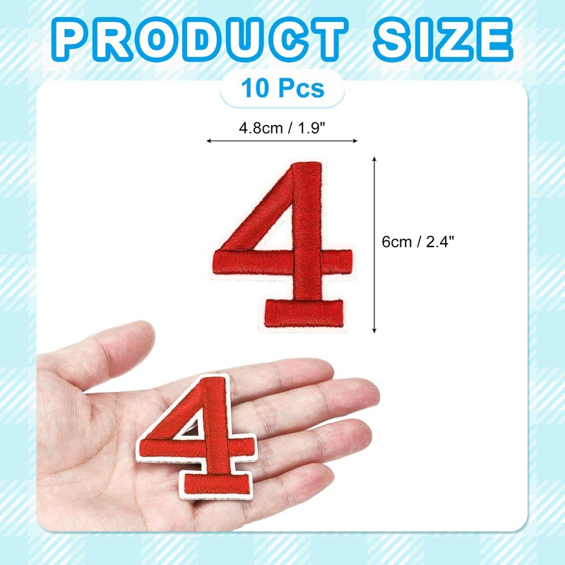 sourcing map 10 Pcs Number Patches 2.4" Height Number 4 Embroidered Decorative Repair Patches Iron/Sew on Embroidery Appliques for Decor Clothes Shoes Hats Backpacks DIY Crafts, Red