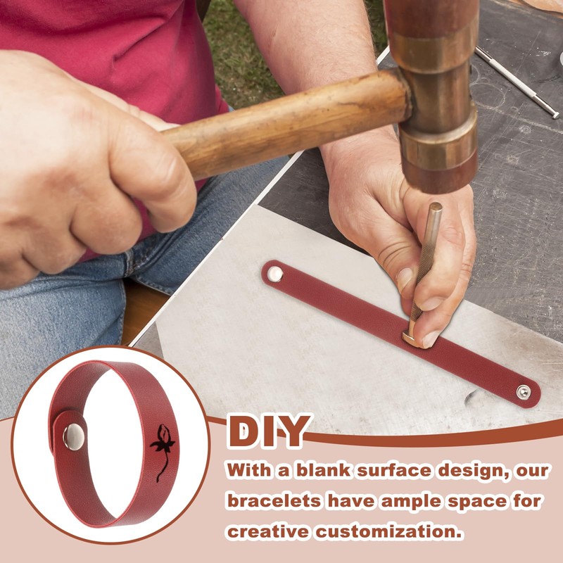 - Our leather snap bracelets can be worn as fashion bracelets, or you can dye, paint, or draw on the blank leather surface, or punch, spray, stamp, engrave, or stick rivets and rhinestones in your style to DIY wristbands.