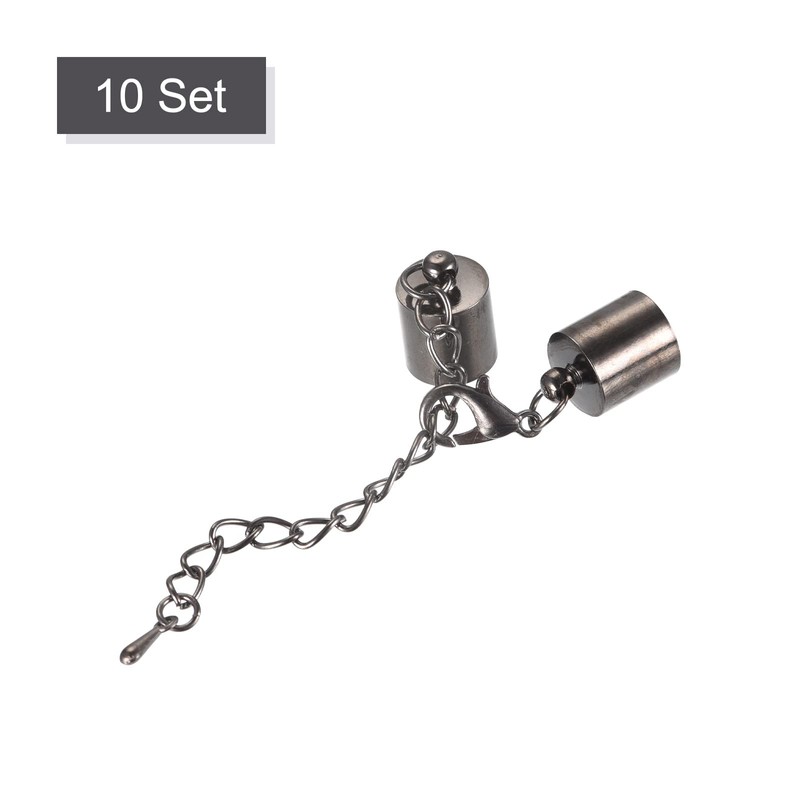 sourcing map 10 Set 10 mm Leather Cord End Caps with Lobster Clasps and Extension Chain for DIY Making Bracelets Metallic Black