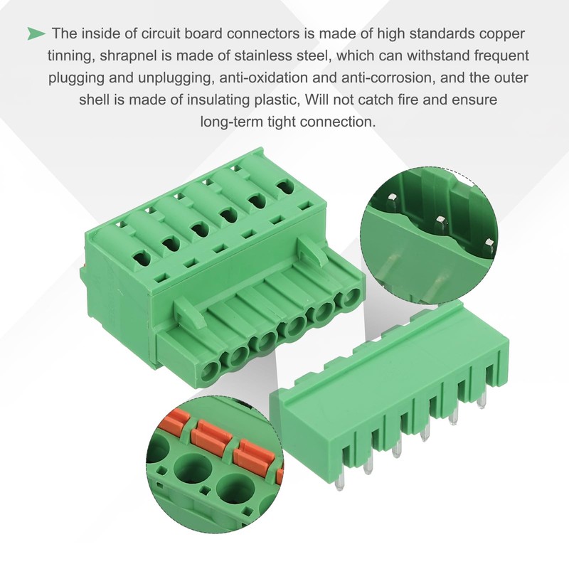The inside of circuit board connectors is made of high standards copper tinning, shrapnel is made of stainless steel, which can withstand frequent plugging and unplugging, anti-oxidation and anti-corrosion, and the outer shell is made of insulating plastic, Will not catch fire and ensure long-term tight connection.