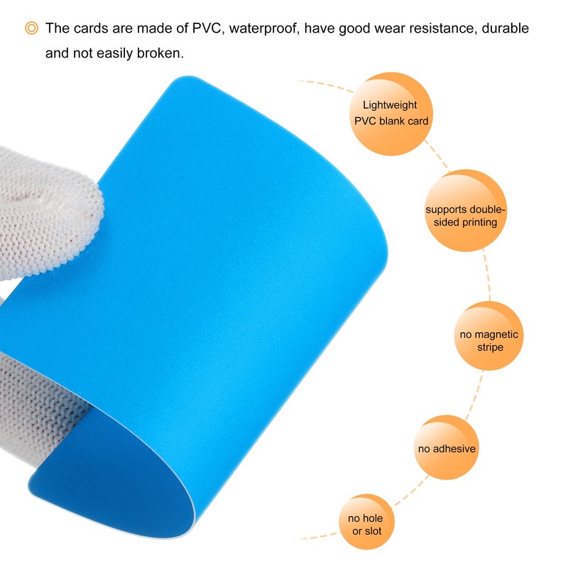 sourcing map 100 Pack Blank PVC Cards 30mil ID Cards Blank Credit Cards Plastic Cards Waterproof & Double Sided Printing for ID Badge Printer, Graphics Sky Blue