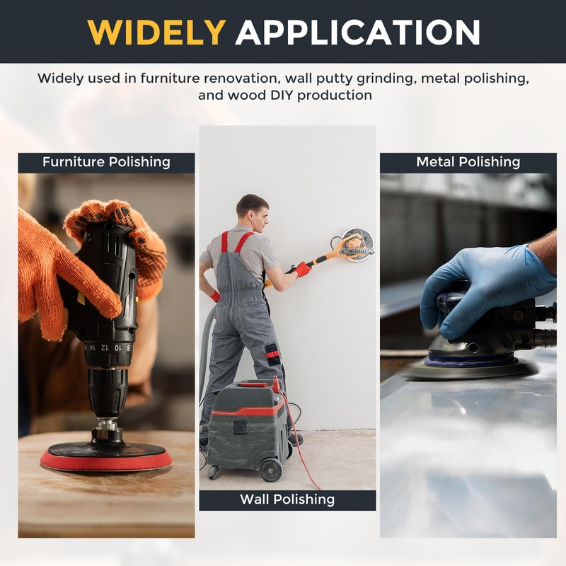 - 5.【Wide application】Round sanding discs are suitable for guitars, musical instruments, carvings, stone jewelry, photo frames, mechanical parts, etc.; they can also be used for car polishing, paint removal, rust removal, headlight polishing, fiberglass, plastic, etc. Can be used with drywall sander, random orbital sander, pneumatic grinders, electric drills, etc.