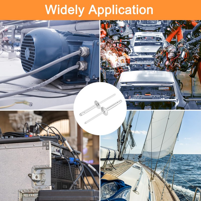 Widely Applicable - Large head tri grip rivets are commonly used in furniture appliances, industrial aviation, piping systems, containers, ships, kayaks, etc.