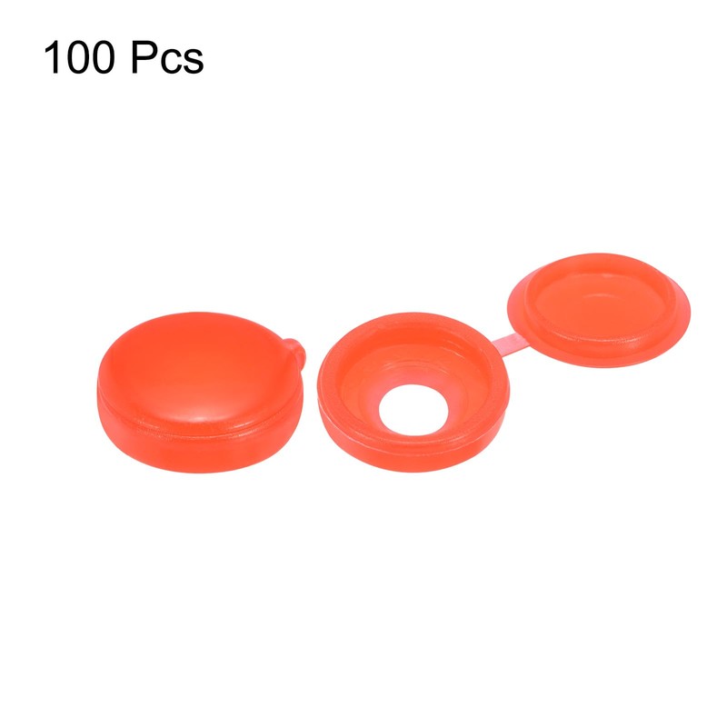 sourcing map 100Pcs 5mm Hinged Screw Cover Caps Plastic Fold Screw Snap Covers Washer Flip Screw Protection Cover for M3 M4 M5 Screws, Red