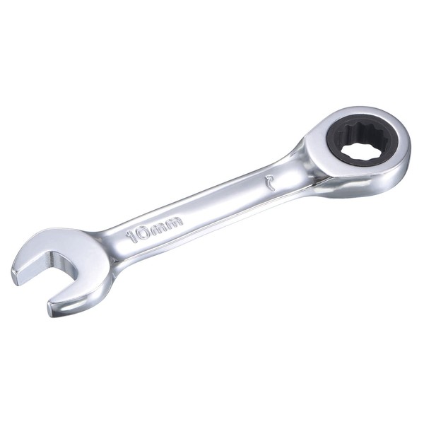 sourcing map 10mm Stubby Ratcheting Combination Wrench Metric 72 Teeth 12 Point Box Ended Tools, CR-V