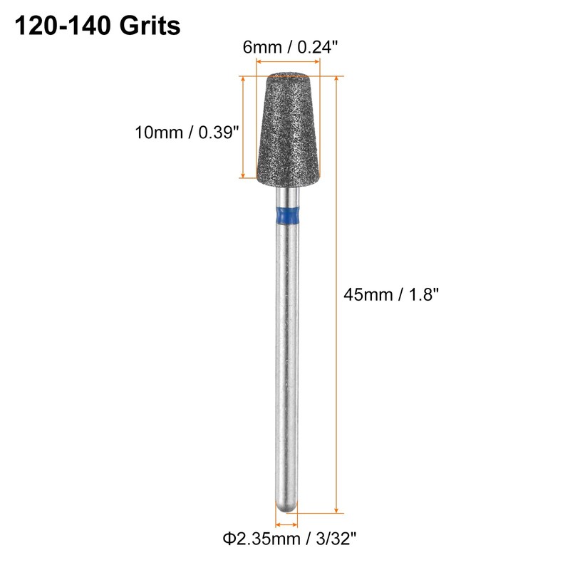 sourcing map 10pcs 120-140 Grits Diamond Grinding Bit 6mm Cone Head 2.35mm Shank 10mm Length Stone Sanding Drill Bits Rotary Tool for Ceramic Glass Nails Grinding Polishing