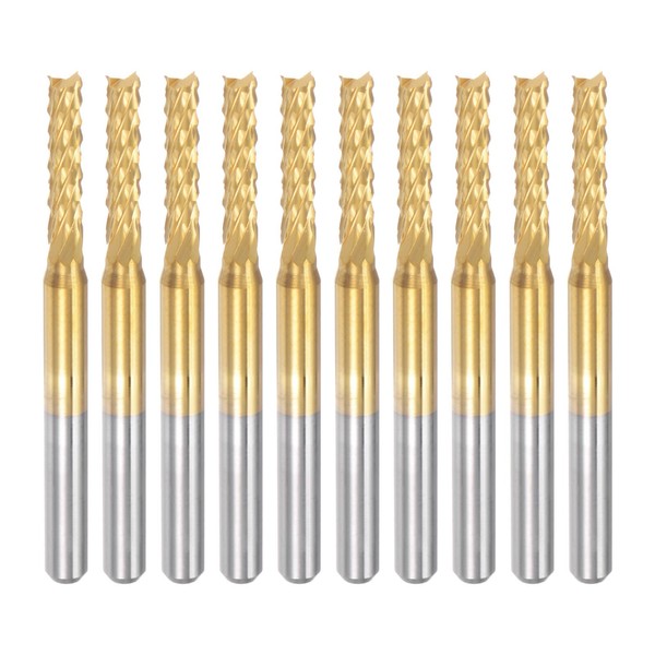 sourcing map 10Pcs 2.5mm Titanium Coat Carbide End Mill Engraving Milling Cutter CNC Router Bits for PCB Machine, 1/8" Shank