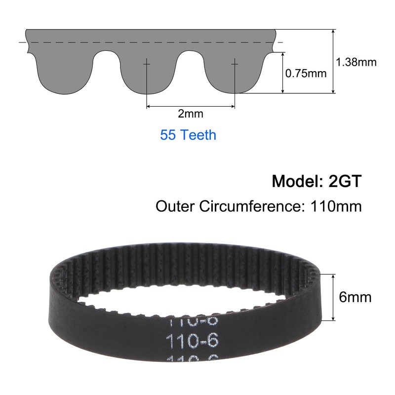 - Size: 2GT timing belt - 6mm Width, 110mm Outer Circumference, 55 Teeth, for better power transmission.