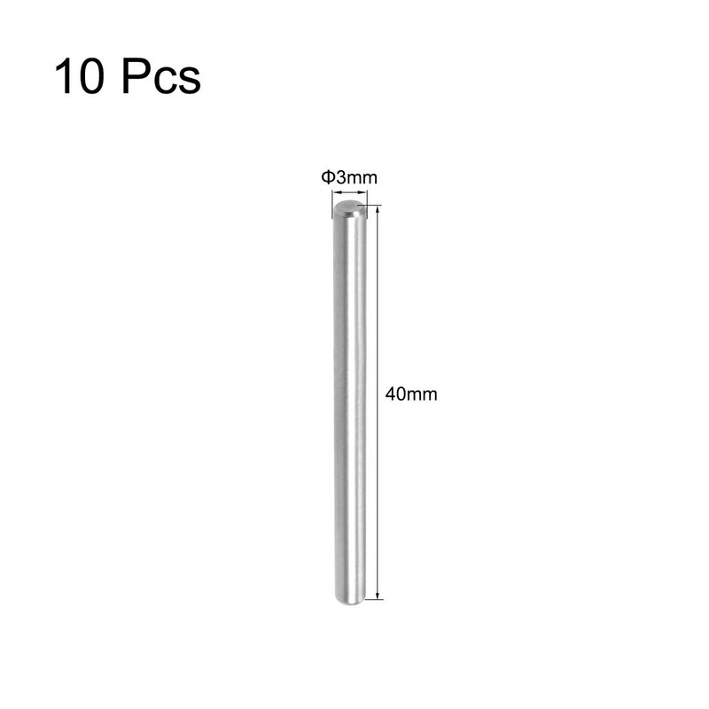 Steel dowel pins is 3 mm/ 0.12" in diameter and 40 mm/1.57" in height; Steel dowel pins color is in silver tone, 10 pieces.