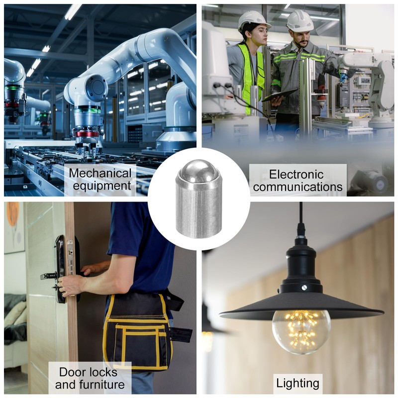 - Features - The ball plunger with accurate positioning is easy to install and use, and the step-free design makes the positioning effect more flexible and quick to operate. It can be easily installed and used with a simple press-in mechanism to play the role of positioning, indexing, locking or lifting.