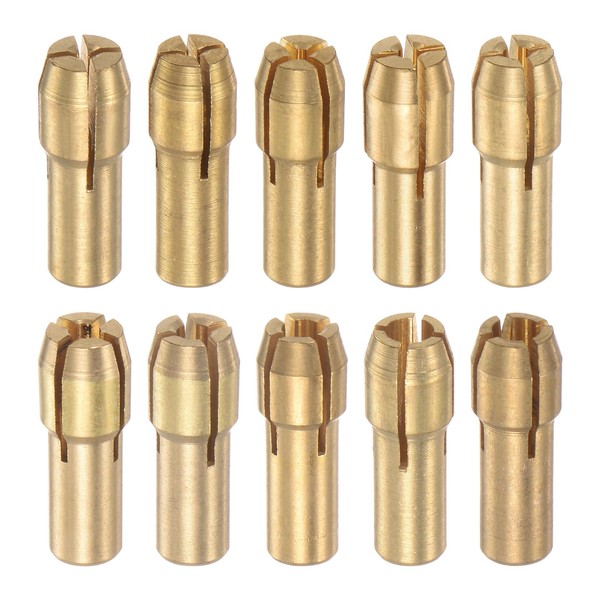 sourcing map 10pcs Brass Collet 0.5-3.2mm Brass Drill Chucks Mini Electric Grinder Quick Change Drill Chuck Bit Sets for Rotary Tools, 4.8mm Shank Diameter