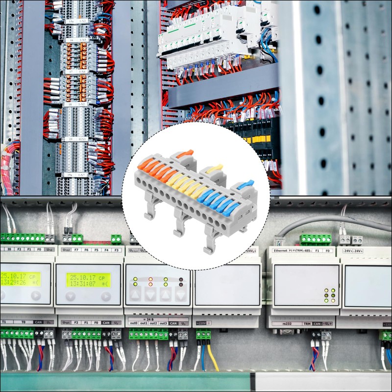 - Din Rail Press Quick Terminal Blocks enables wires to be easily and securely joined together in a simple way, allowing users to easily open the handle of the connector, insert the wire into the colored metal contacts, and close the handle again to complete the connection.