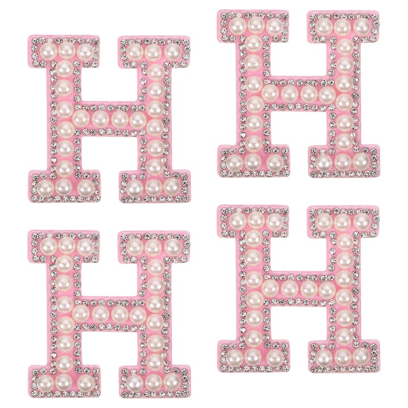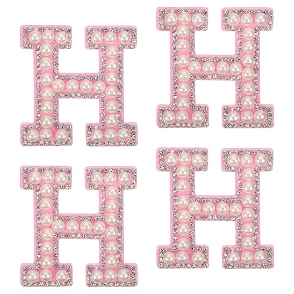 sourcing map 10Pcs Iron on Letters Patches, Letter H Rhinestone Pearl Alphabet Applique English Letter Sew on Patch for DIY Clothing Hat Bag, White Pink