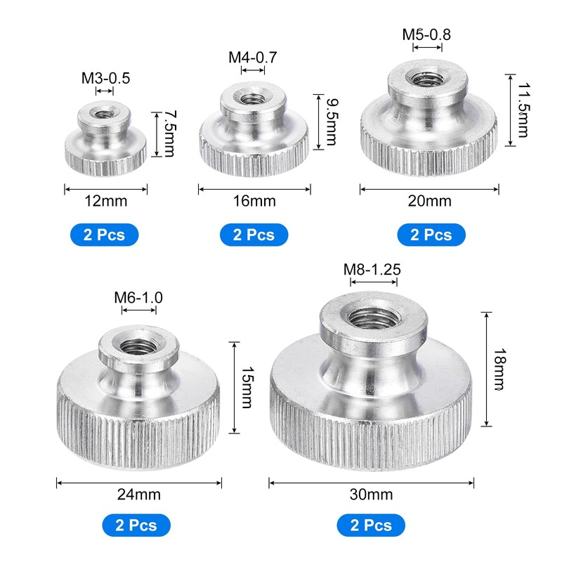 - Various Size: 10pcs knurled thumb nuts in 5 different sizes are included in the package, namely M3x0.5mm, M4x0.7mm, M5x0.8mm, M6x1mm, M8x1.25mm. Various sizes can meet your needs of daily use.