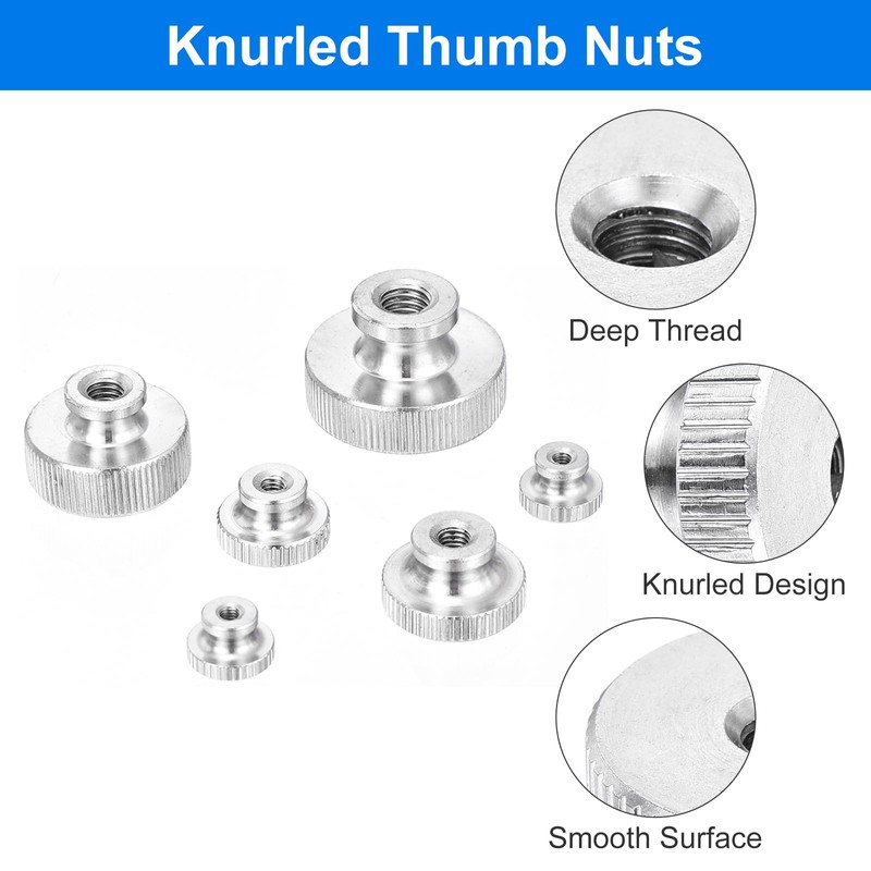 - Application: These knurled thumb nuts are widely used in the machinery industry, furniture fastening, 3D printing parts, etc. Great for items that need quick adjustments, use them to replace old ones.