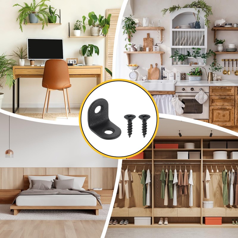 3. Easy To Use: The right-angle L-shaped bracket can help you quickly and easily fix furniture. When installing, align the bracket with the corner or seam, mark the screw hole, and tighten the screw with a screwdriver.