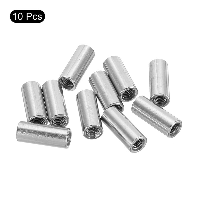 sourcing map 10Pcs M5 Round Connector Nuts, 304 Stainless Steel Coupling Nut 20mm/0.8" Length Sleeve Rod Bar Stud Nut for Bracket, M5x20x8mm