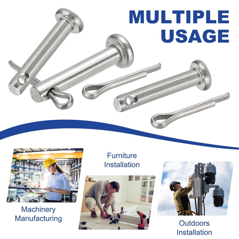 - The clevis pins are suitable for machinery manufacturing industry, home repair, multi-purpose trailers, hinges or shaft fixing devices applications, furniture installation, small DIY projects, metal automotive mechanics, car garage, workshop power equipment, cars, trucks, lawn mower engine repair, small engine repair and fastening, trailer hitches, latches, and more.