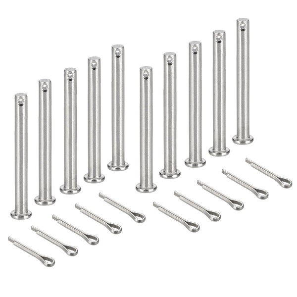 sourcing map 10Pcs M6x70mm Clevis Pins, 304 Stainless Steel Single Hole Flat Head Hitch Fastener Lock Systems with Cotter Pins for Furniture Installation Trailer Lawn Mower, Silver
