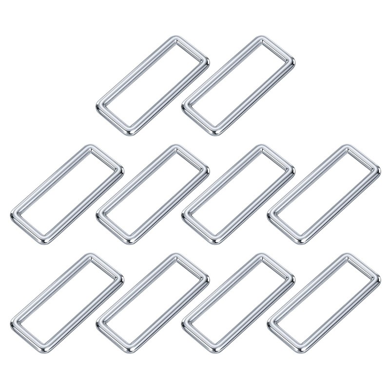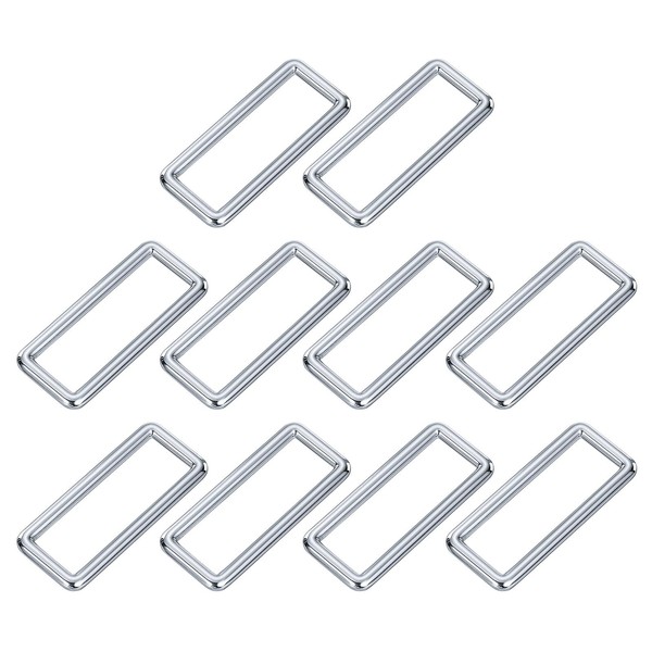 sourcing map 10Pcs Metal Rectangle Ring, 2 x 5/8 Inch Metal Rectangular Buckle Webbing Strap Fastener for Bag Belt DIY Accessories, Silver