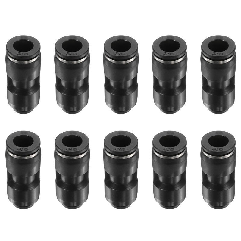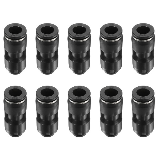 sourcing map 10pcs Push to Connect Fittings 3/8" OD x 1/4" OD Straight Pneumatic Connector Zinc Alloy Quick Connect Union Two-Way Fittings for Semi Truck Trailers Air Brake System, Black