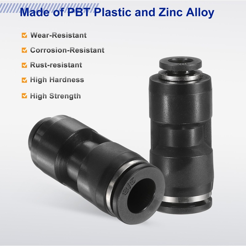 - Material - Our air pipe connector kit is made of PBT plastic and zinc alloy, which is light in weight, has excellent wear resistance and corrosion resistance, can effectively prevent corrosion and rust, and has high hardness and high strength, suitable for high pressure applications.