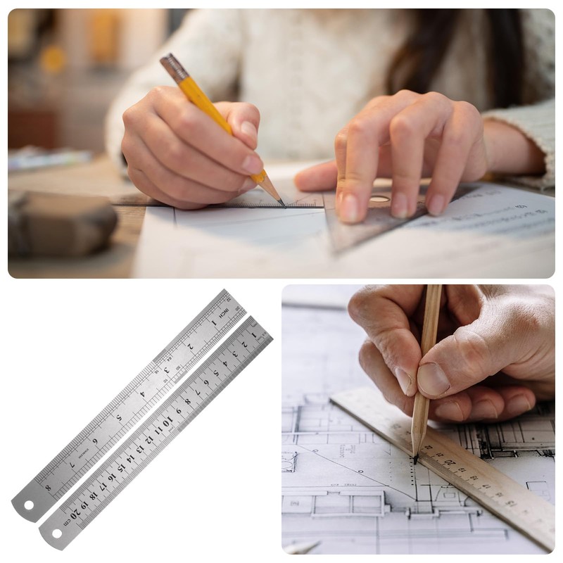 • Feature -The stainless steel ruler has precise inch and metric measurement scale markings, which are clearly visible and easy to read. The straight ruler has smooth rounded ends and does not hurt your hands.