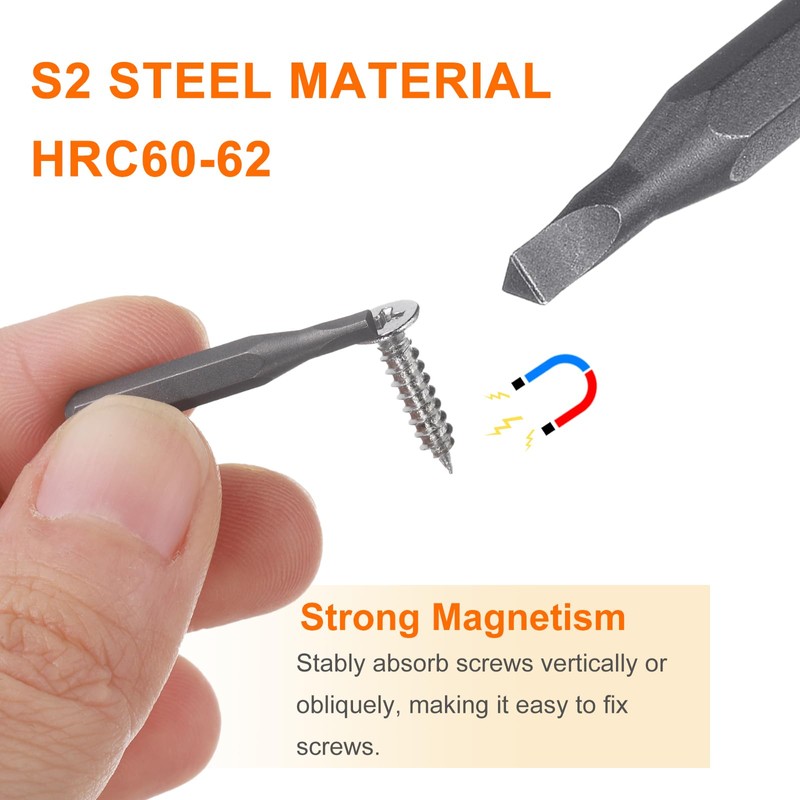 - Feature - The screwdriver bits are designed with strong magnetism, which can stably absorb the screws vertically or tilted and easily fix the screws, especially in a small space, which can make it more convenient to complete the work