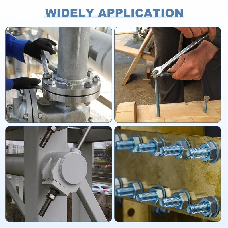 Easy to Use - The thread bar stud rods are designed to be fully threaded and can be used with bolts, nuts, and flat washers. When assembling, insert the fully threaded rod into the object or part to be connected and then tighten it by rotating the nut. You can freely cut it to the required length